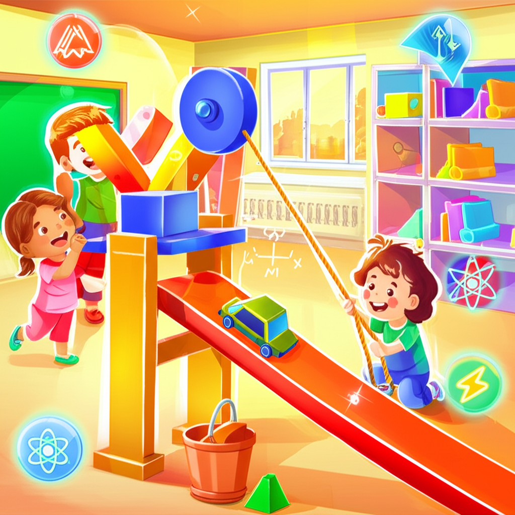 An educational song teaching about simple machines and mechanical advantage using the rhythm of 'Wheels on the Bus'.