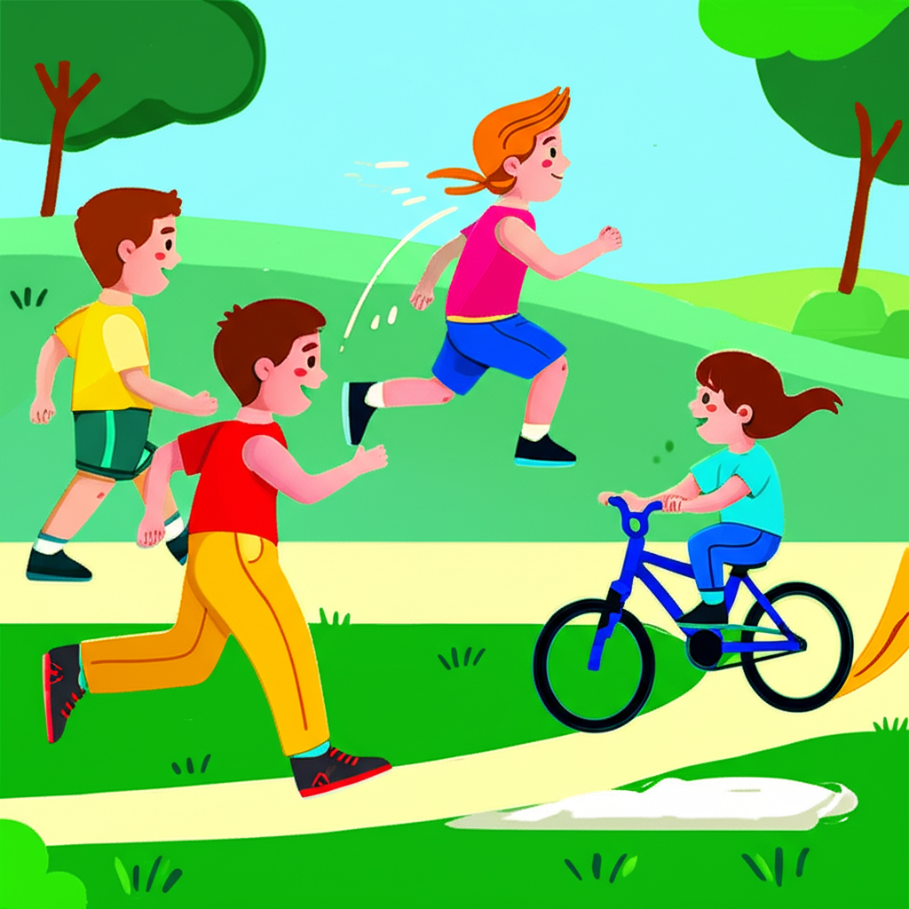 An engaging physics song that teaches children about the fundamental concepts of distance, speed, and acceleration through everyday activities like walking, running, jumping, and riding bikes.